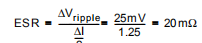 根据上面的等式,纹波电流约为1.25A。因此,ESR由以下公式得出: