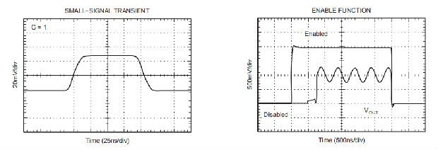 启用时间为1.5μs,禁用时间仅为50ns。这使得OPA358的输出可以多路复用到公共输出总线上。禁用时,输出假定为高阻抗状态。
