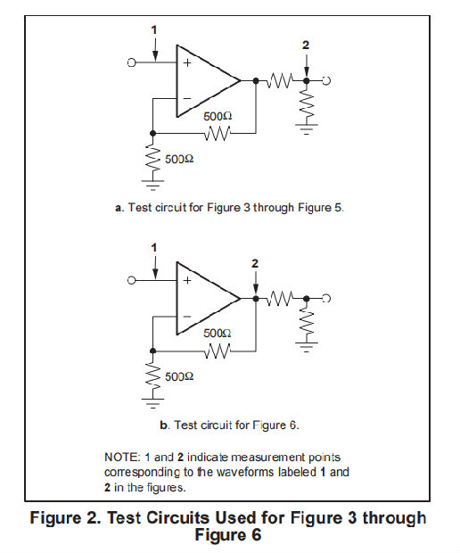 图2显示了图3到图13和图16的测试电路。(注:1和2表示与图中标记为1和2的波形相对应的测量点。)