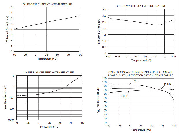 在−40°C至+85°C的温度范围内,OPA358完全规定为+2.7V至+3.3V。随工作电压或温度而显著变化的参数显示在典型特性中。