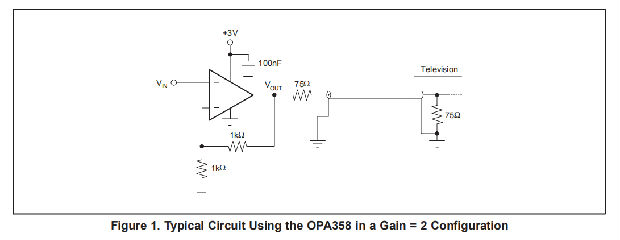 OPA358在SC70-6中提供,SC70-6是目前可用于视频应用的最小软件包。