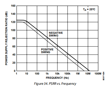 [2]、长期输入偏移电压稳定性是指在运行的前30天之后,电压与时间的平均趋势线。不包括运行的初始小时,前30天的V变化通常为2.5μV。请参阅典型性能特性部分。