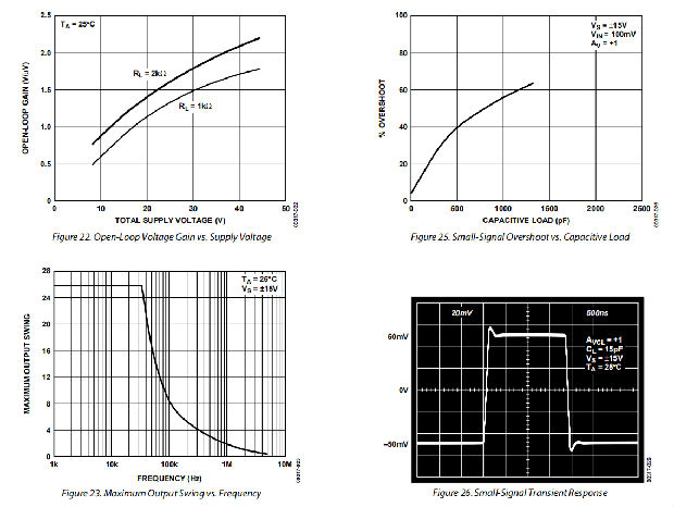 具有良好的负载驱动能力。一个保证的摆动±10伏到600Ω和低输出失真使OP27成为专业音频应用的最佳选择。