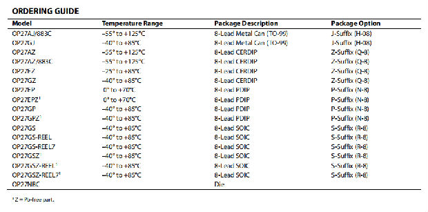 OP27是OP06、OP07和OP45放大器的直接替代品;AD741类型的放大器可以通过移除AD741的调零电位计直接替换。