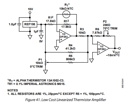 低成本线性化热敏电阻放大器