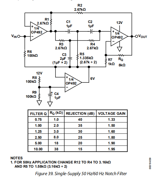 50 Hz/60 Hz单电源陷波器