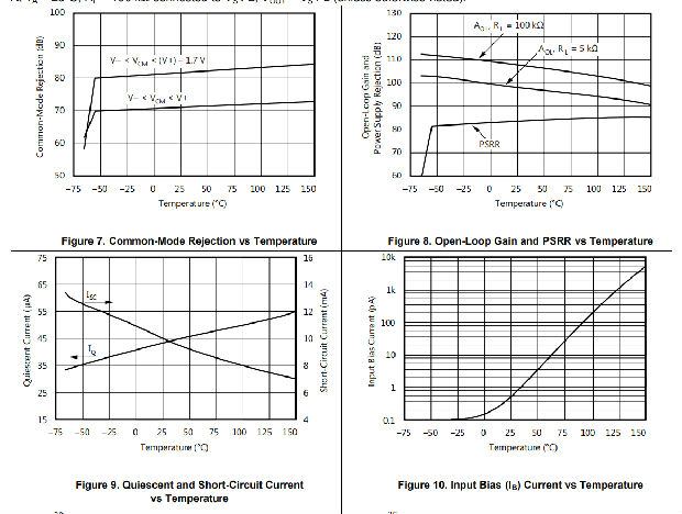 OPAx348-Q1系列设备规定在1.8 V至5.5 V(±0.9 V至±2.75 V)下工作;许多规范适用于-40°C至125°C。典型特征所示参数可能会显示出与工作电压或温度相关的显著差异。