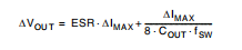 电容器中的电流有一个三角形的波形(平均值为零)在其上产生电压纹波。这种纹波是由电容元件和电阻元件(ESR)。因此,必须选择输出电容器,以便电压纹波符合应用要求。电压纹波的数量可以从获得的电流纹波开始计算由感应器选择。