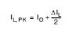 其中FSW是开关频率1/(TON+TOFF)。例如,如果VOUT=3.3V,VIN=12V,IO=2A,FSW=250KHz,则最小值为电感值∆IL=30%IO约为18uH。通过电感器的峰值电流由以下公式得出: