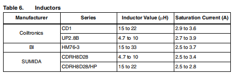 因此,如果电感器值减小,峰值电流(必须低于电流设备限制)增加。电感值越高,平均值越高在没有达到电流限制的情况下可以输出的电流。下表列出了一些电感器零件号