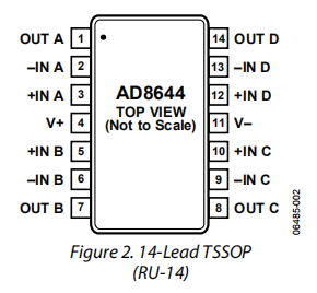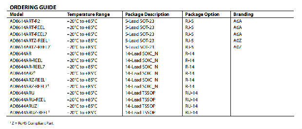 AD8614和AD8644的温度范围为-20°C至+85°C。它们有5线SOT-23、14线TSSOP和14线SOIC表面安装封装,采用磁带和卷盘形式。