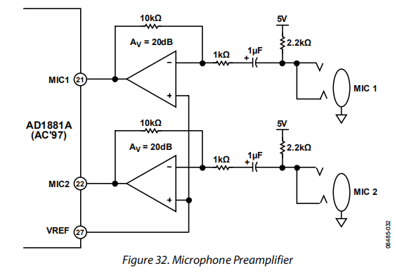 两个电路都不需要输入耦合电容器,因为参考电压由AD1881A提供。
