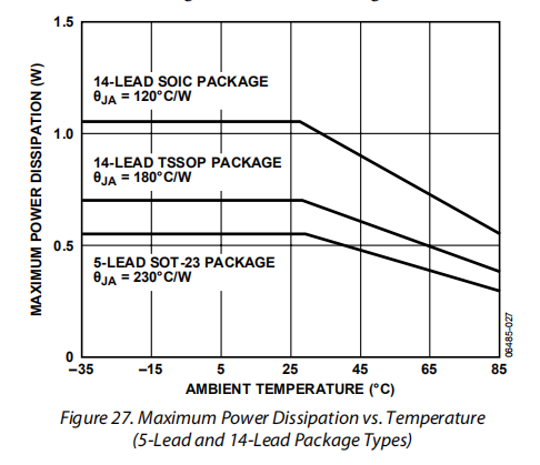 θJA是AD8614/AD8644结到环境封装的热阻。