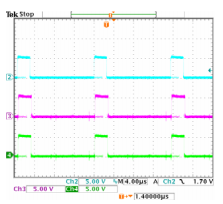 图4显示了模块的门信号,在数字化期间处于运行模式调光95%占空比。如图所示,所有信号同步。每一个信号的负载之间的差异循环是因为每个灯都有独立的控制循环。