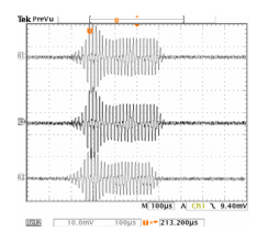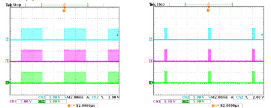 每个集成电路都包含一个独立的打击控制器因此,打击控制器是与同步信号无关。以下示波器当主模块打开时拍摄波形照片打击模式和药膏处于运行模式。