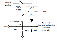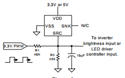 输出节点实际达到1.25V时,电源从大约R1将提供6μA的电流。这假设LED驱动器的高阻抗输入。在图3中,用户增加了可调偏差控制,允许控制最小和最大输出电压。这使得用户可根据个人喜好调整输出亮度在有限的范围内。PWM输入源当然可以替换为等效直流电压。
