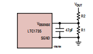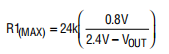 调节输出电压1.8V,最大值R1的值应该是32k。注意在输出电压高于2.4V无需R1的最大值来吸收检测引脚电流;然而,R1仍受VOSENSE反馈电流。