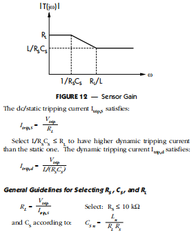 流过电感器的电流是三角波。如果传感器组件的选择应确保:左/右=卢比*CS电容器上的电压等于电流流经电阻器,即。VCS=ILRL由于VCS反映了感应器电流,通过选择适当的RS和CS,可使VCS到达比较器电压(LX166xA为60毫伏,LX166x为100毫伏)期望跳闸电流。设计实例(奔腾II电路,最大静态电流14.2A)传感器的增益可以描述为: