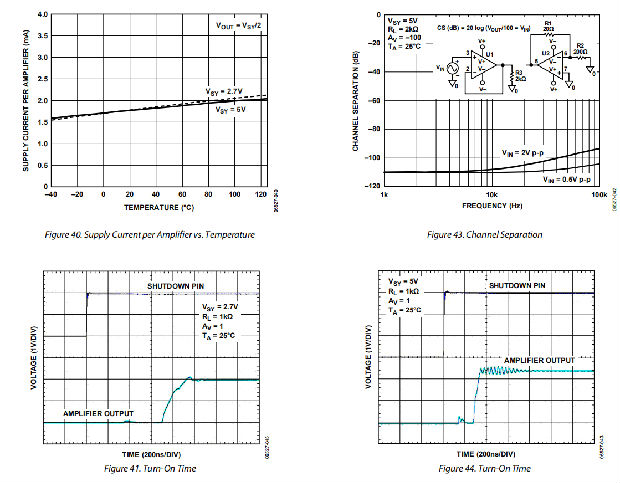 应用包括便携式和低功耗仪器、便携式设备的音频放大、便携式电话耳机、条形码扫描仪和多极过滤器。在输入和输出端摆轨的能力使设计者能够在单电源系统中缓冲CMOS adc、dac、asic和其他宽输出摆动器件。