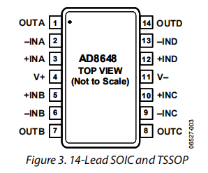 AD8646和AD8647是双通道的,而AD8648是四路、轨对轨、输入和输出的单电源放大器,具有低失调电压、宽信号带宽、低输入电压和低电流噪声。AD8647还具有低功耗关机功能。