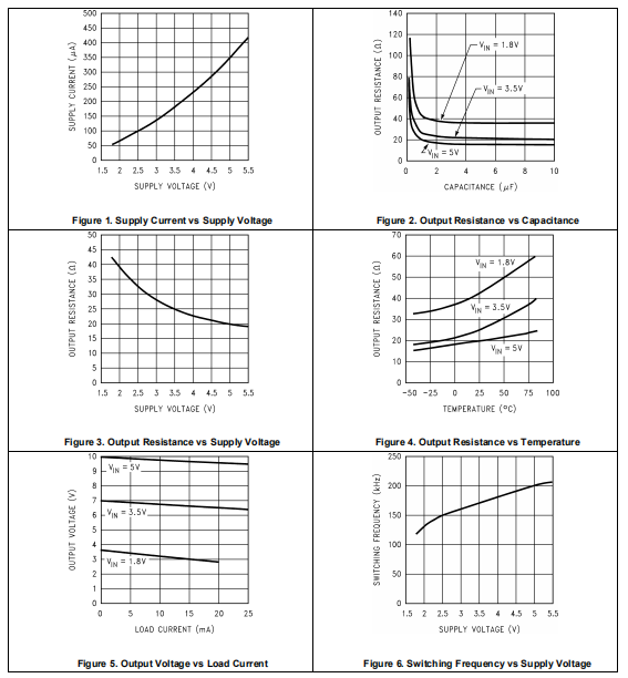 (2) 规定的输出电阻包括内部开关电阻和电容ESR。有关详细信息,请参见应用和实现正电压倍增器。