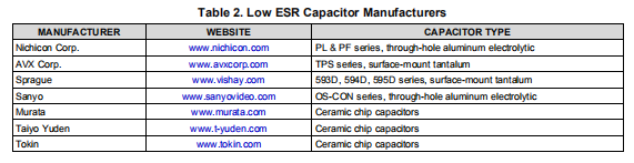 高电容、低ESR电容器可以降低输出电阻和电压纹波。