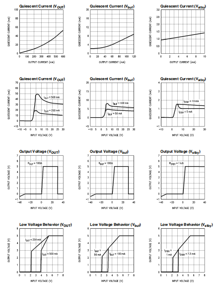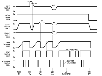 缓冲区输出与主输出相似,因为它是由ON/OFF开关控制,以便在待机模式。它也是防止过电压和热过载的故障保护装置。如果电压高于输入大约30V(例如负载转储),此输出将自动关闭。这样可以保护内部电路和使IC能够承受比否则是意料之中的。由于这种输出是集成电路中的功耗。主输出主输出被设计用于为相对较大的负载供电,i、 e.大约500毫安。因此,它也受到保护防止过电压和热过载。这个输出将在几毫伏内跟踪另外两个正常运行。因此可以作为参考电路断电产生的任何信号的电压备用或缓冲输出。这在比例分析中很重要传感器系统或任何需要精确匹配的系统电源电压。
