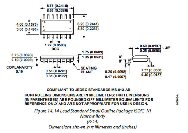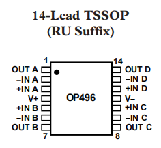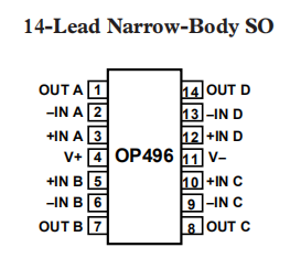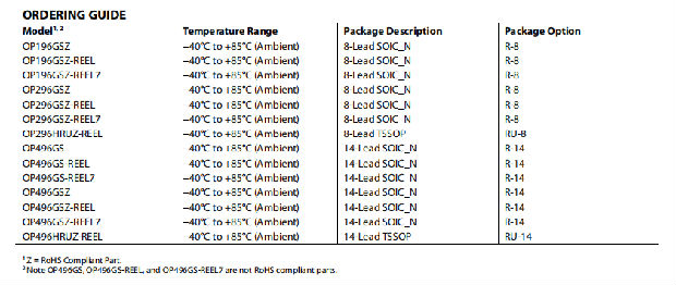 单OP196和双OP296有8线SOIC和TSSOP封装。四路OP496有14线SOIC和TSSOP封装。
