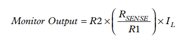 对于显示的元件值,监视器输出的传输特性为2.5 V/A。