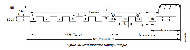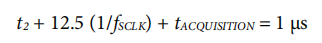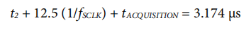 如果fSCLK=5 MHz和315 kSPS的吞吐量,则周期时间为: