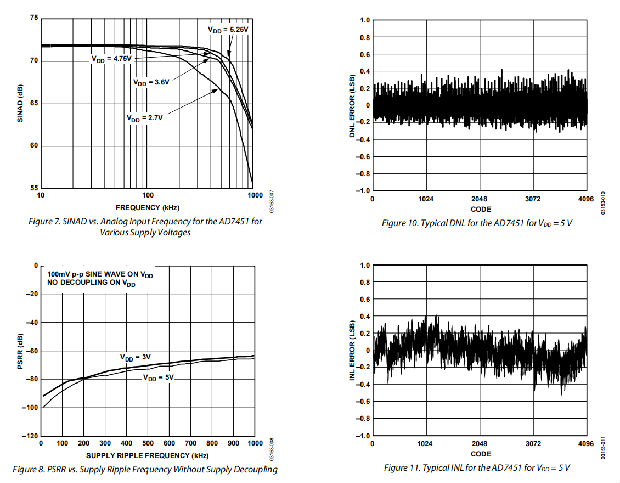 当转换发生时,伪地对应于0,最大模拟输入对应于AD7451的4096和AD7441的1024。