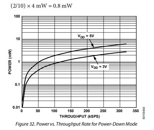 因此,在吞吐量为100 kSPS的每个循环中消耗的平均功率为,
