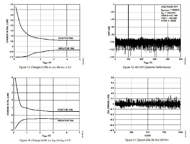 THD是谐波的均方根和与基波的比值。在AD7441/AD7451中,THD为