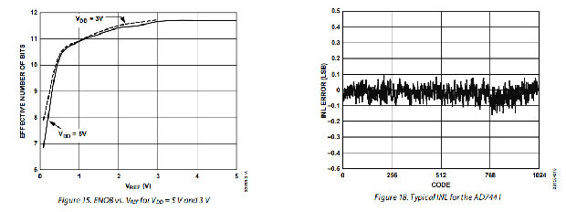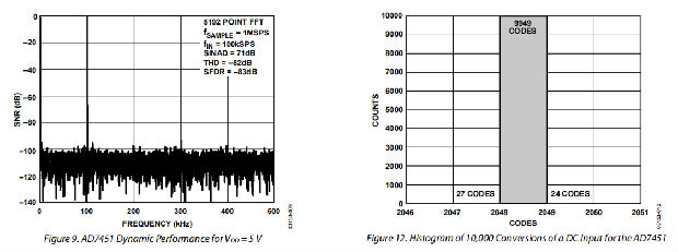 因此,对于12位转换器,SINAD为74db;对于10位转换器,SINAD为62db。