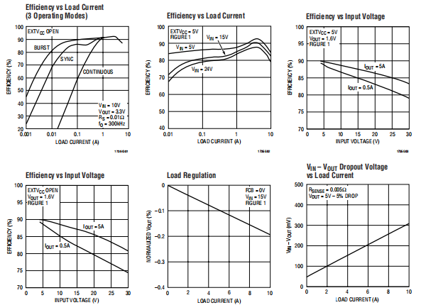 INTVCC:内部5.2V调节器和EXTVCC的输出开关。驱动器和控制电路由这个电压。使用1μF陶瓷与电源地断开连接与集成电路直接相邻的电容器至少4.7μF钽或其他低ESR电容器。