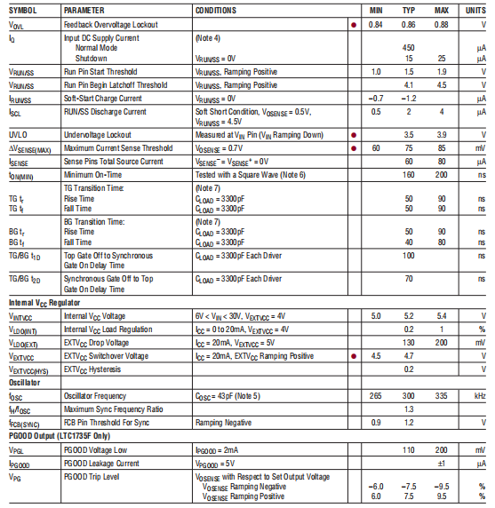 注3:LTC1735在一个反馈回路中进行测试,该回路将VOSENSE误差放大器的平衡点(VITH=1.2V)。