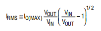 在连续模式下,顶部的源电流N沟道MOSFET是一种占空比为VOUT/VIN的方波。为了防止大电压瞬变,低ESR输入最大均方根电流的电容器尺寸必须为用过。最大均方根电容电流由下式得出: