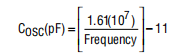 由外部振荡器电容器决定的频率。每次上部MOSFET打开时COSC上的电压重置为接地。在准时的时候,COSC由固定电流充电。当电压在电容器达到1.19V,COSC复位接地。这个然后重复这个过程。COSC的值是根据期望的操作计算出来的假设FCB上没有外部时钟输入的频率pin: