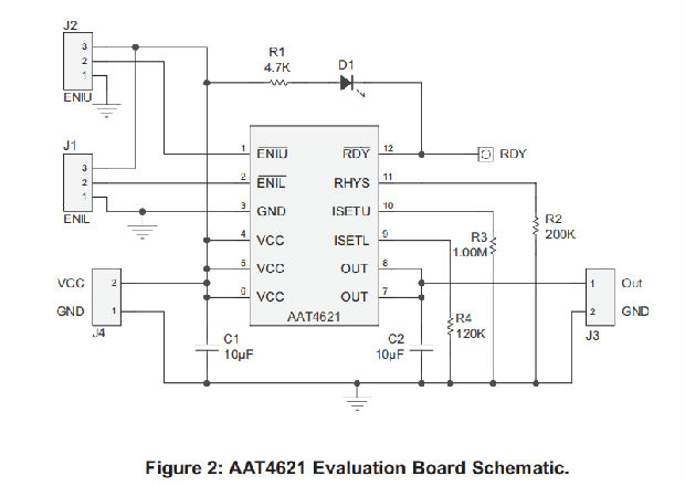 AAT4621提供热增强型、无铅、12针TSOPJW或14针TDFN33封装,其温度范围为-40°C至85°C。