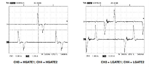 图3:驱动器峰值电流:高压侧(左)和低压侧(右)