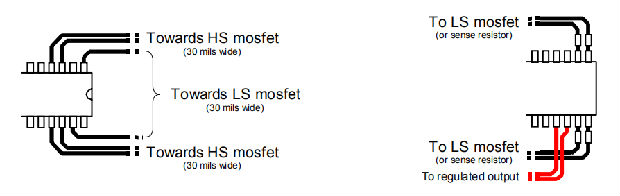 –建议在HS mosfet漏极附近放置额外的100nF陶瓷电容器。这有助于减少噪音。