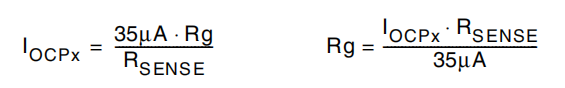 跨导电阻器Rg可设计为在满额定负载下每相具有25μA的电流信息;过电流干预阈值设置为标称值的140%(IINFOx=35μA)。