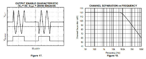逻辑输入是高阻抗CMOS输入。双运算放大器提供单独的逻辑输入。对于电池供电的应用,此功能可用于大幅降低平均电流并延长电池寿命。启用时间为20μs;禁用时间为1μs。禁用时,输出呈现高阻抗状态。这使得OPA363可以作为“门控”放大器运行,或者将其输出多路复用到公共模拟输出总线上。