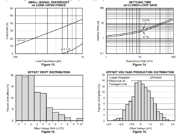在单位增益方面,OPA363和OPA364系列运算放大器表现良好,纯电容负载高达约1000pF。负载电容器的ESR(等效串联电阻)足以允许OPA363和OPA364直接驱动非常大的电容性负载(>1μF)。增加增益增强了放大器驱动更多电容的能力;见图13。