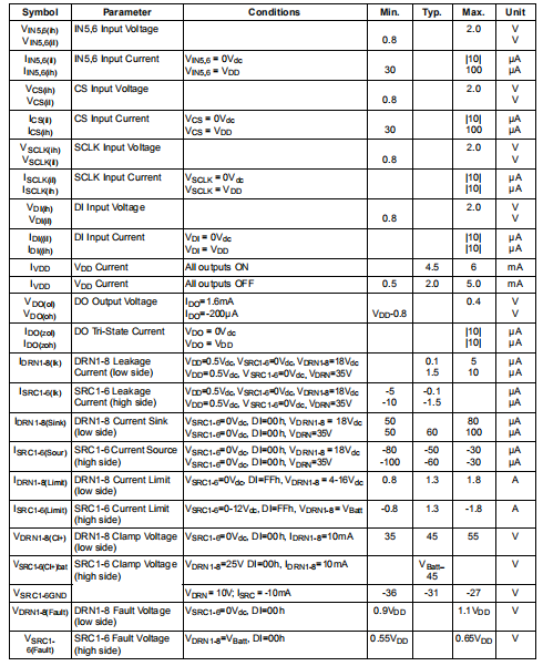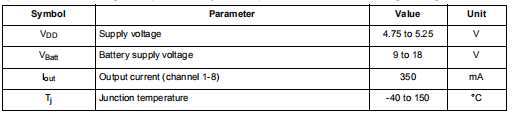 (Tj=-40°C至150°C,VDD=4.75V至5.25Vdc,VBatt=9V至18V,除非另有规定)