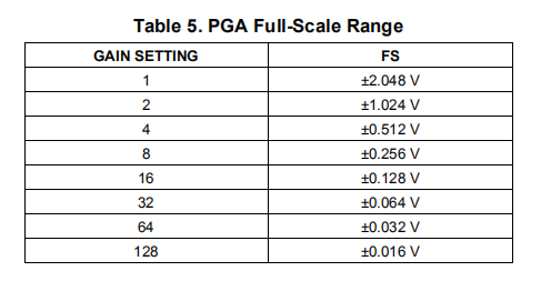 表5显示了使用内部2.048-V基准时相应的满标度范围。