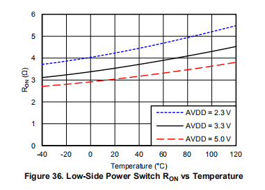 在模拟输入AIN3/REFN1和AVSS之间还集成了一个低导通电阻的低压侧电源开关。此电源开关可用于降低桥式传感器应用中的系统功耗,方法是在转换之间切断桥接电路。设置配置寄存器中的相应位(PSW)时,开关在发送启动/同步命令时自动关闭,在发出断电命令时打开。注意,如果PSW位设置为1,在单次触发模式下转换之间,开关保持闭合。通过将PSW位设置为0,可以随时打开开关。默认情况下,开关始终打开。