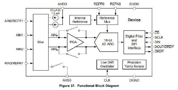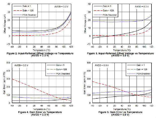 该设备可在单周期沉降的情况下以每秒2000个样本(SPS)的数据速率进行转换。在20 SPS,数字滤波器提供同时50赫兹和60赫兹的抑制噪声的工业应用。内部PGA提供高达128 V/V的增益。这种PGA使ADS1120非常适合测量小传感器信号的应用,例如电阻温度检测器(RTD)、热电偶、热敏电阻和电桥传感器。当使用PGA时,该设备支持伪差分或全差分信号的测量。或者,该器件可以被配置为在提供高输入阻抗的同时绕过内部PGA,并获得高达4v/V的增益,允许单端测量。