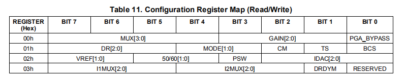 为了帮助检测可能的传感器故障,该设备提供内部10-μa烧毁电流源。当通过在配置寄存器中设置相应的位(bc)来启用时,一个电流源将电流输入到当前选择的正模拟输入(AINP),另一个电流源从所选的负模拟输入(AINN)中吸收电流。