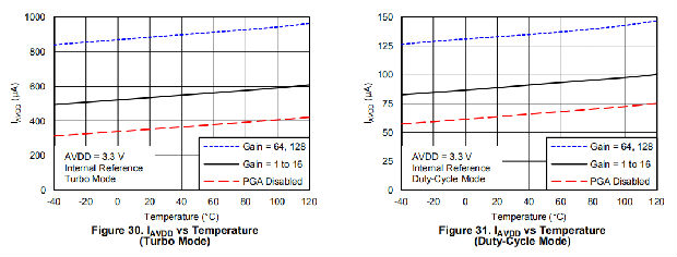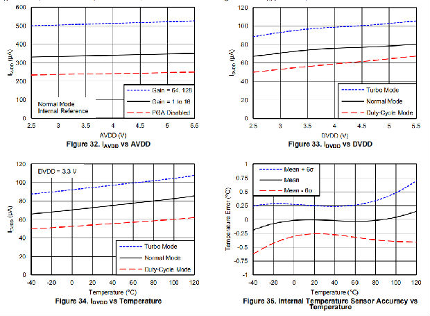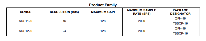 在禁用PGA的占空比模式下工作时,功耗低至120μA。通过模式1 SPI兼容接口建立与设备的通信。ADS1120采用无铅QFN-16或TSSOP-16封装,其温度范围为-40°C至+125°C。